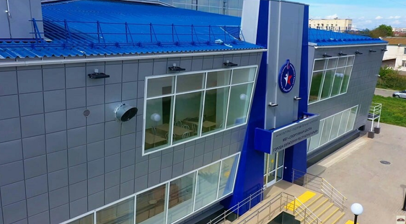 Современный ФОК, расположенный в Евпатории на пересечении улиц Конституции и Проезд 9 мая, построен в рамках Федеральной целевой программы «Социально-экономическое развитие Республики Крым и г. Севастополя до 2025 года». Возведение двухэтажного здания, общая площадь которого превышает 1400 кв.м, началось в декабре 2019 года и уже в скором времени он распахнет свои двери для местных жителей, в том числе маломобильных, желающих заниматься спортом. Одновременно заниматься в нем смогут 90 человек.