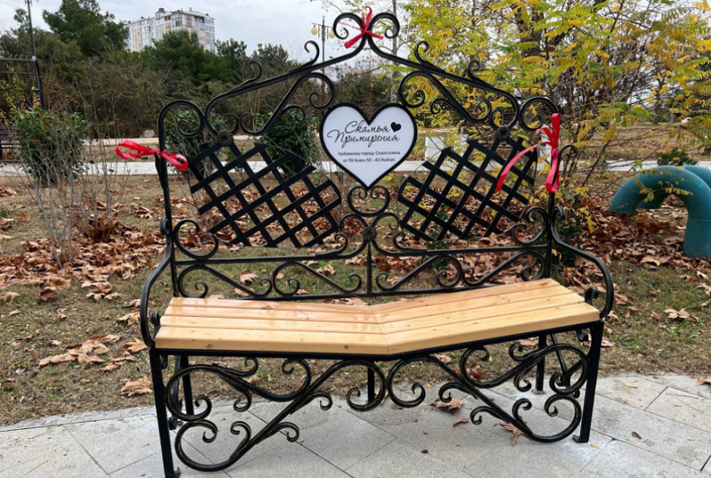 В Севастополе около центрального фонтана парка Победы установили романтический арт-объект — «Скамью примирения».
